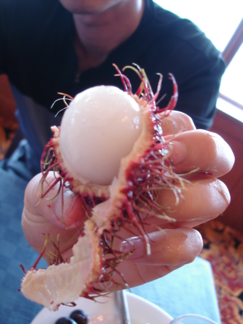 フルーツ好きの夫はライチなども持ってきていました。