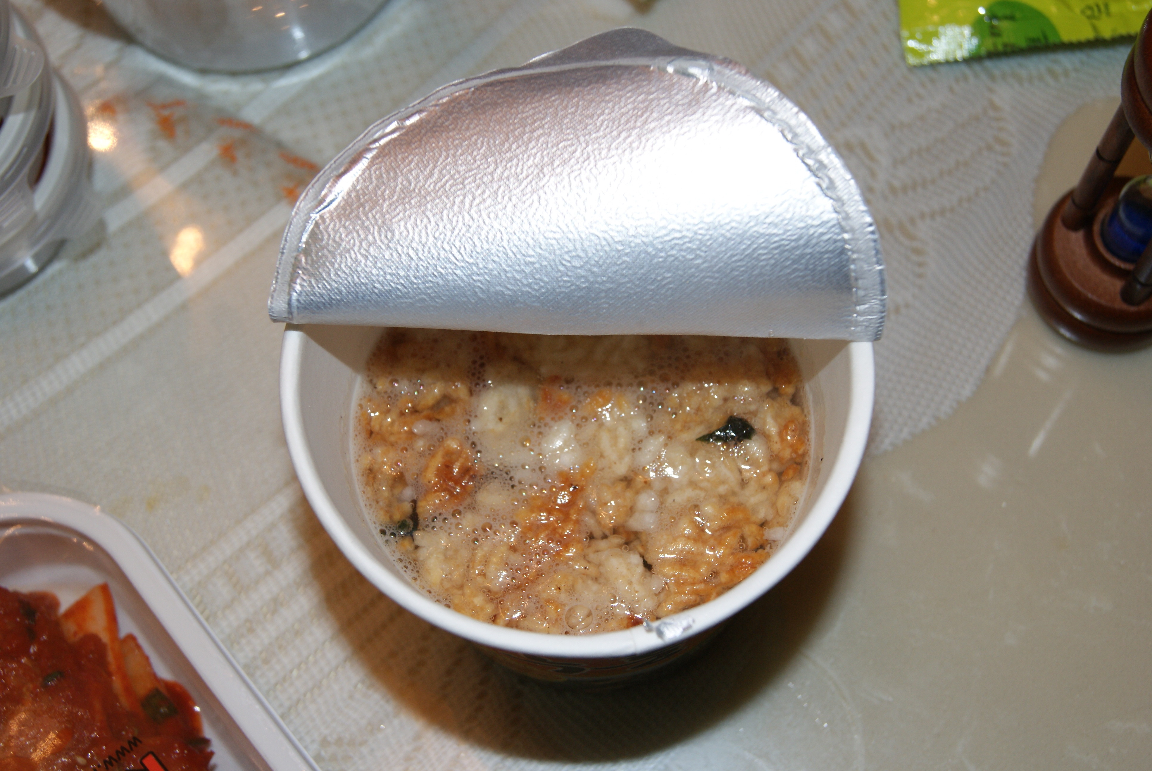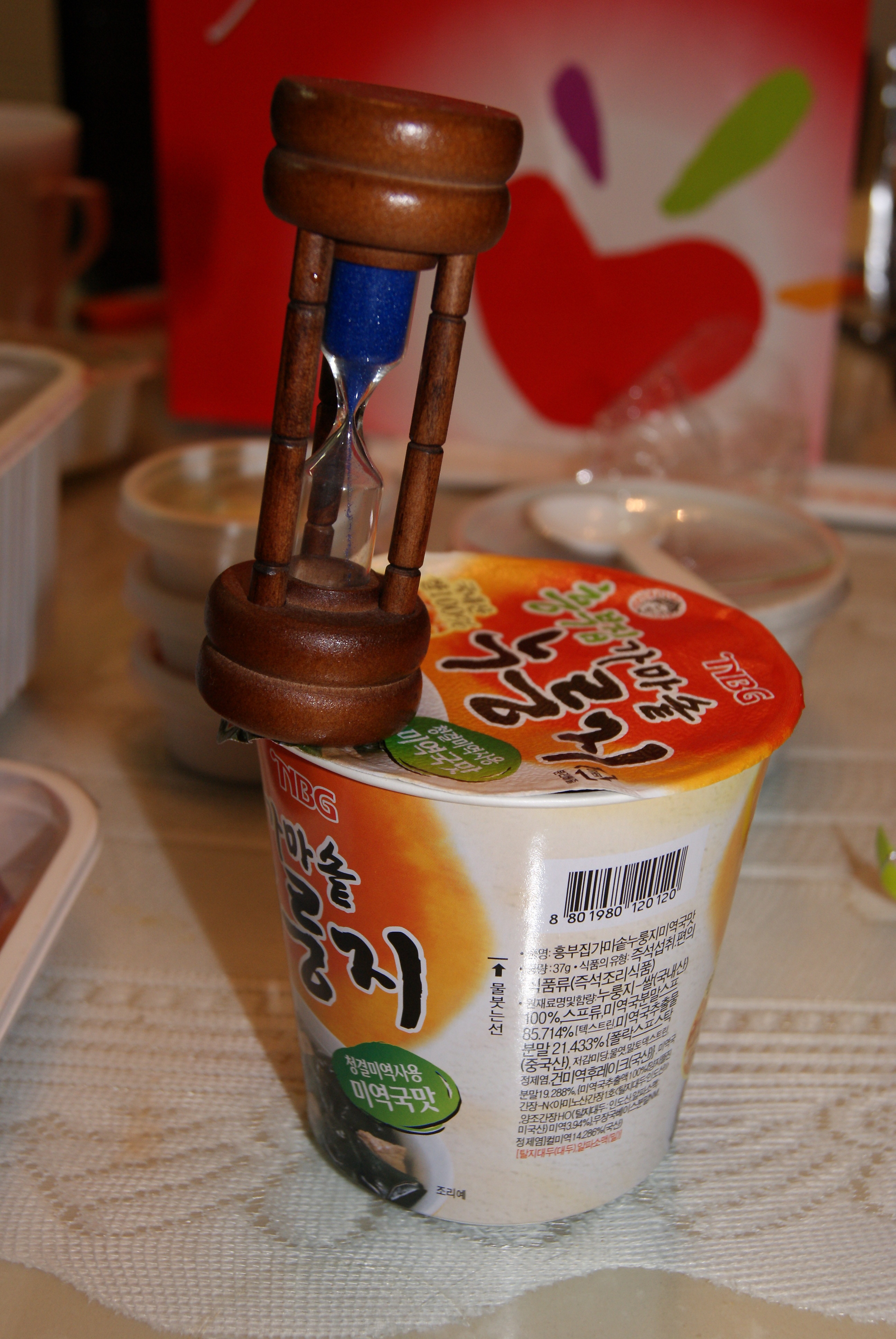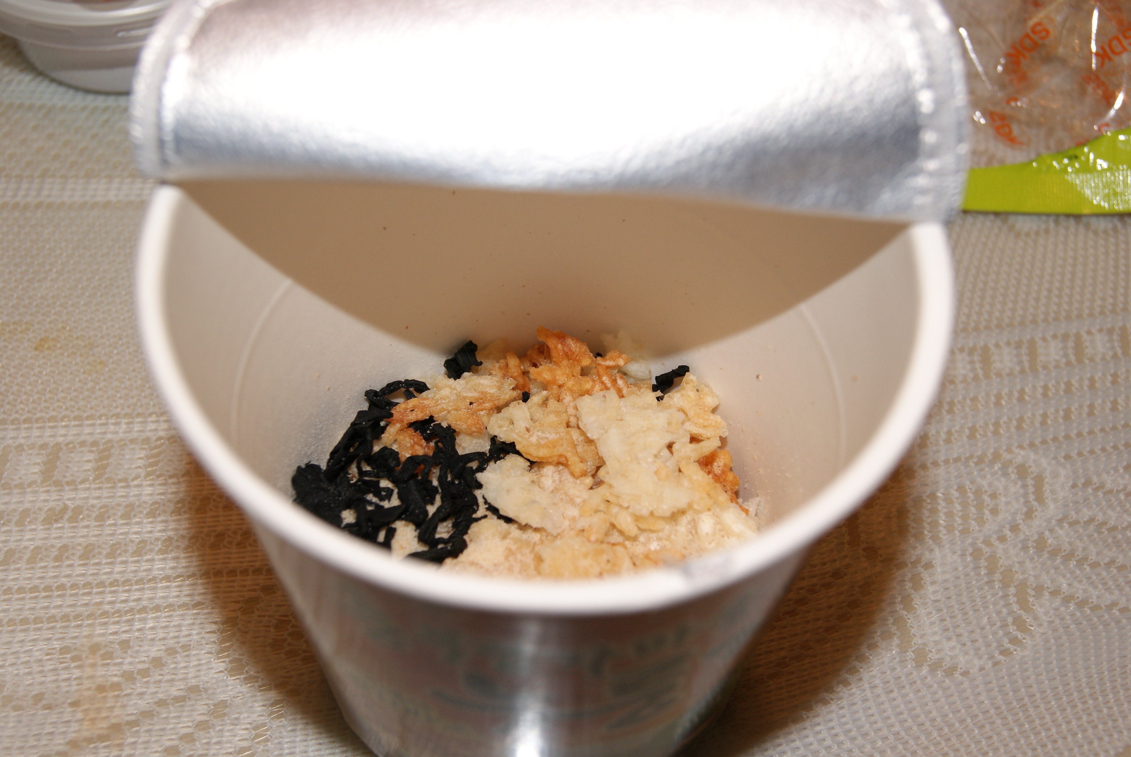 スープとヌルンジをカップに入れてお湯を注ぎます。