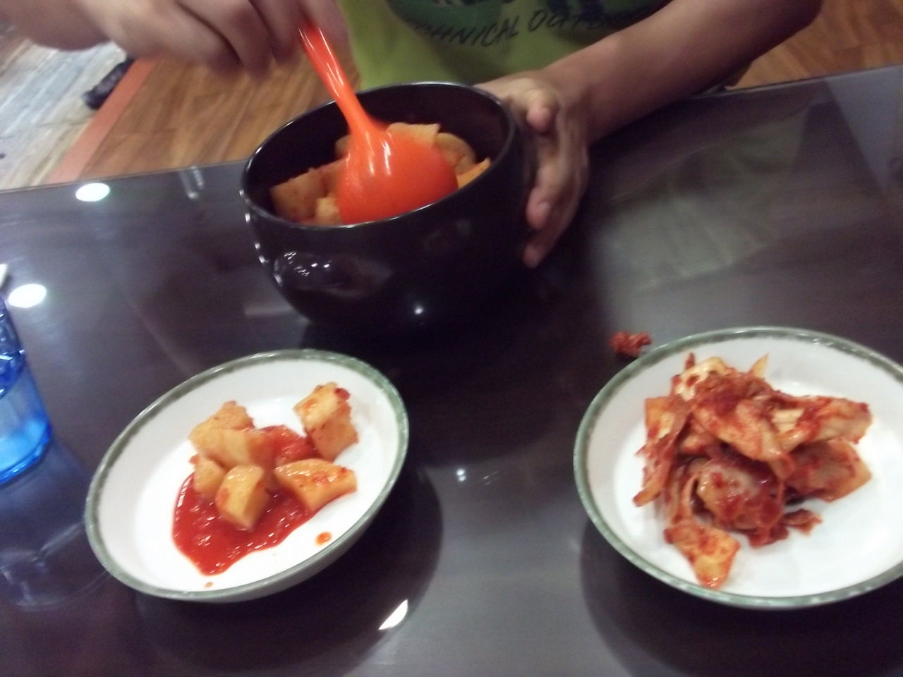 キムチとカクテキはテーブルの横に