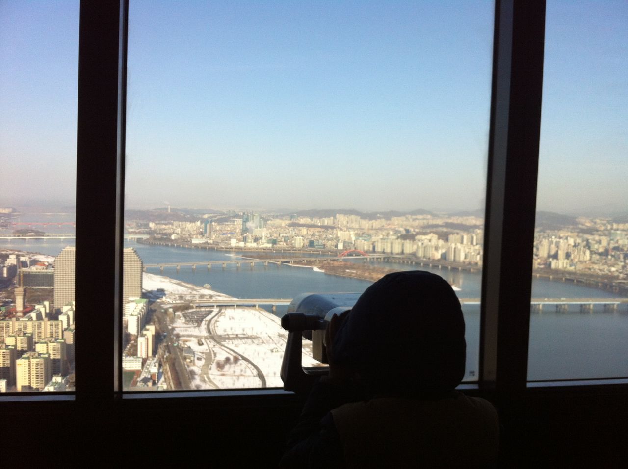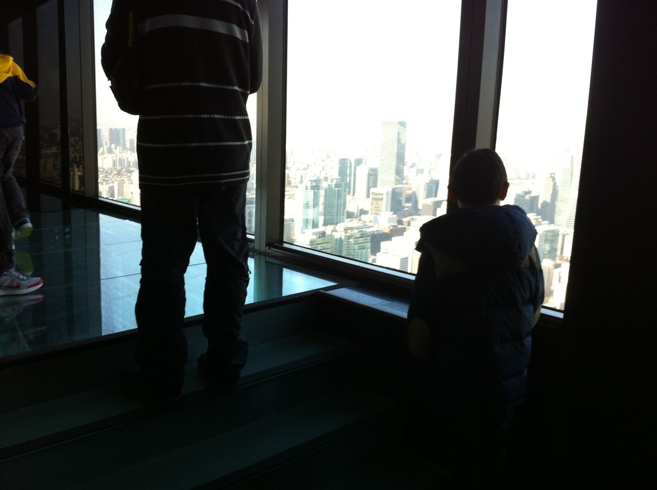 地上を見下ろす息子。