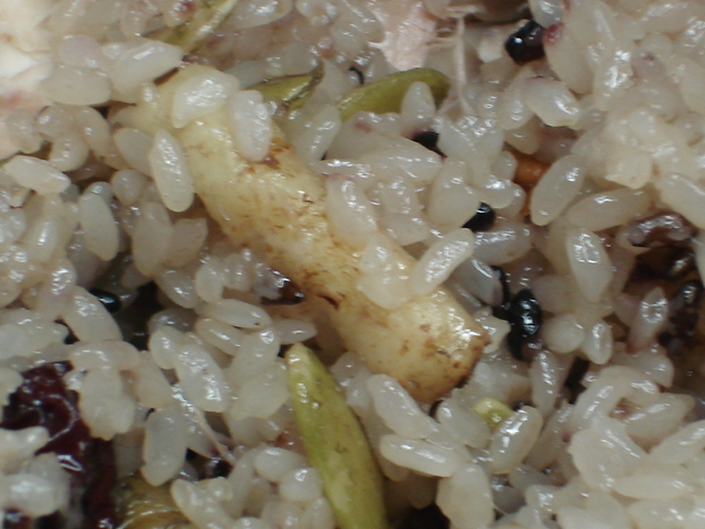 黒米入りのもち米のご飯に高麗人参、棗、かぼちゃの種が入っています。