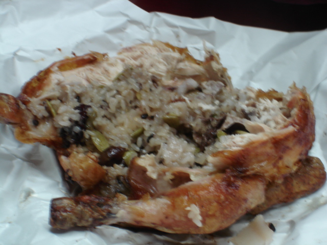 おなかの中にはサムゲタンみたいにご飯と薬材が詰まっています。